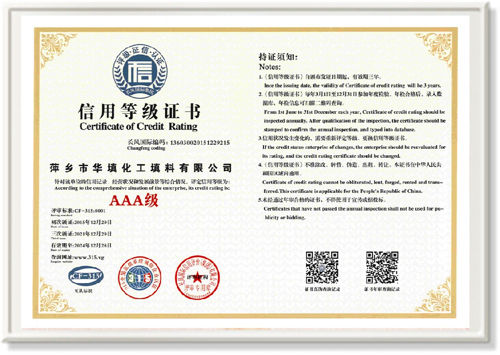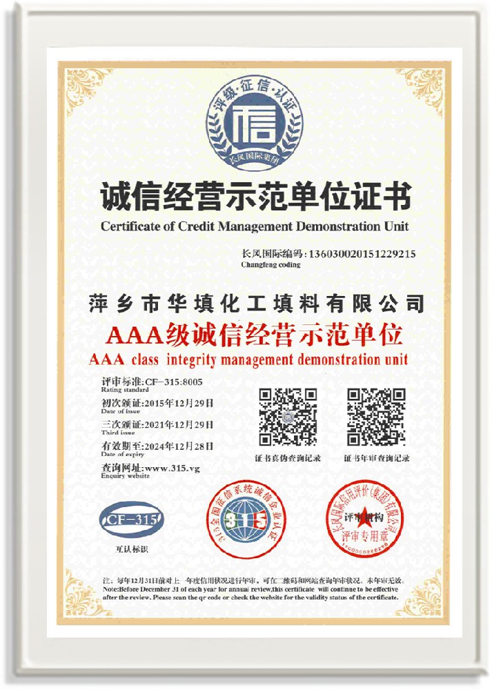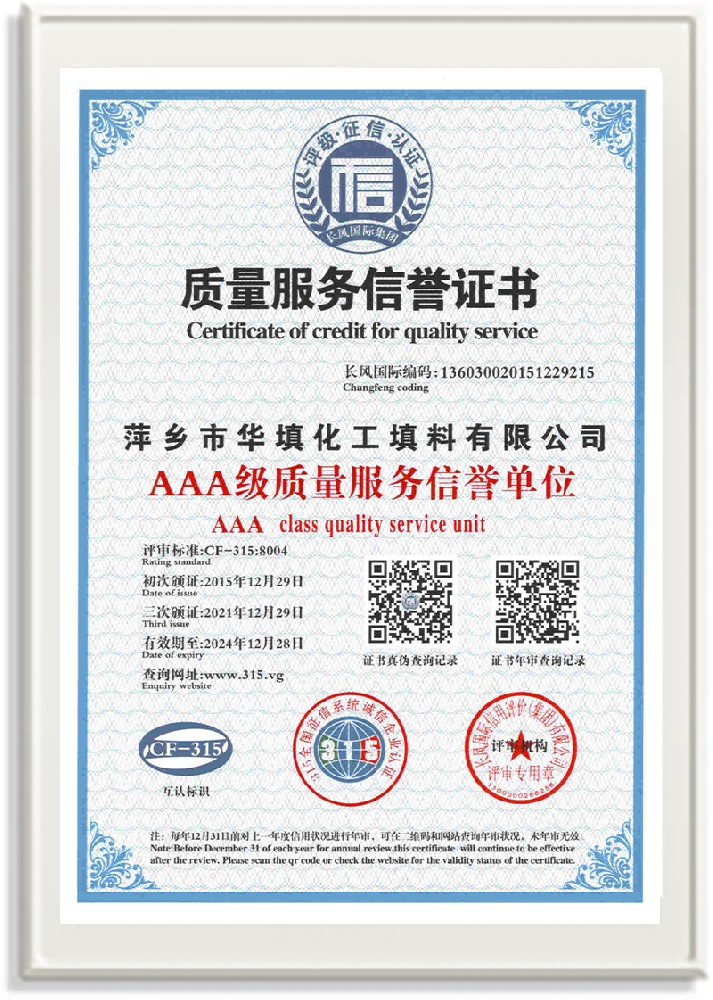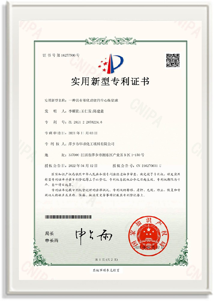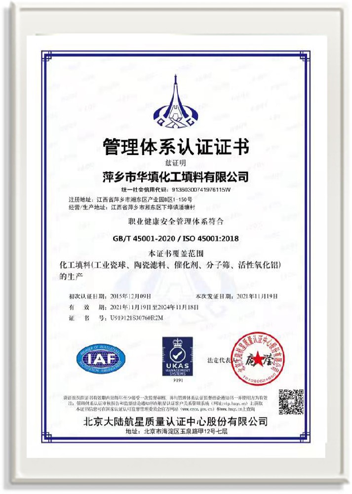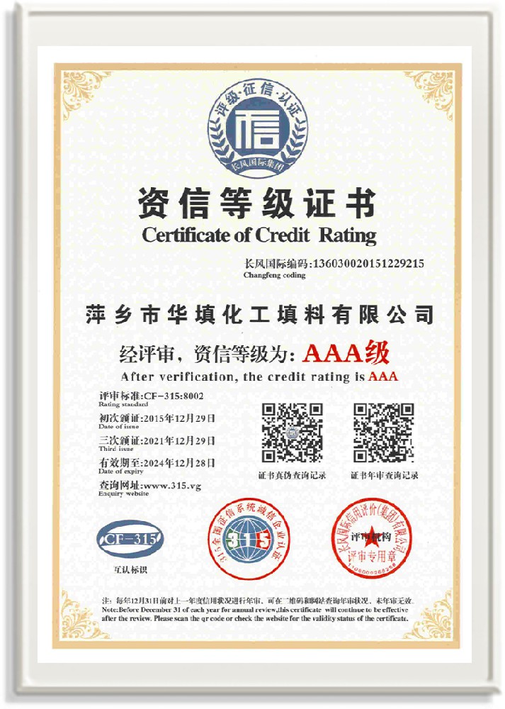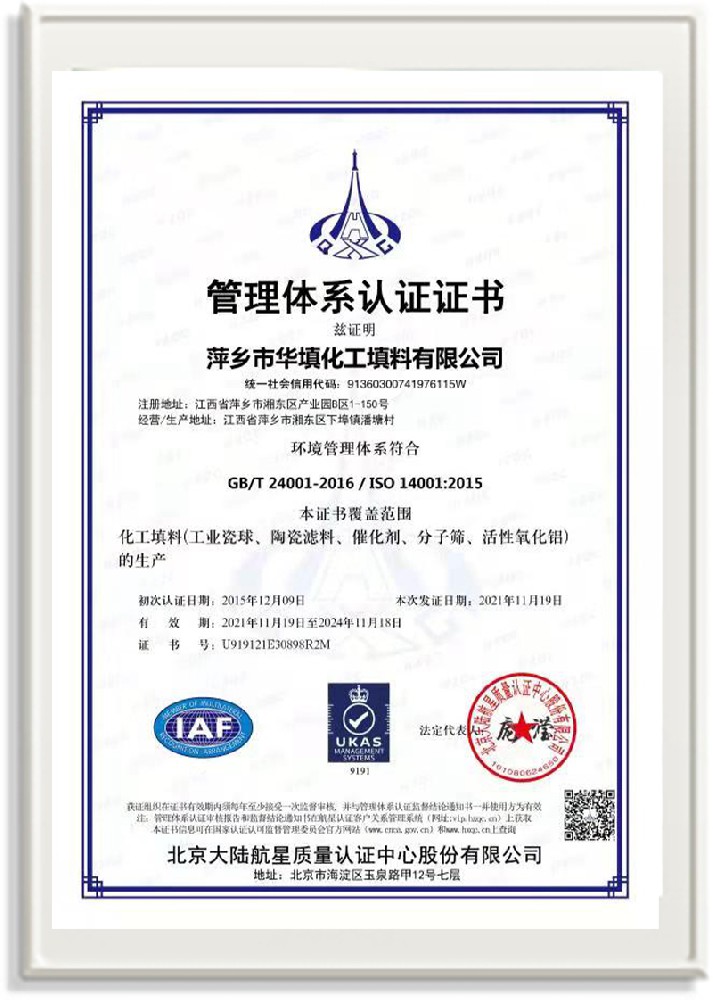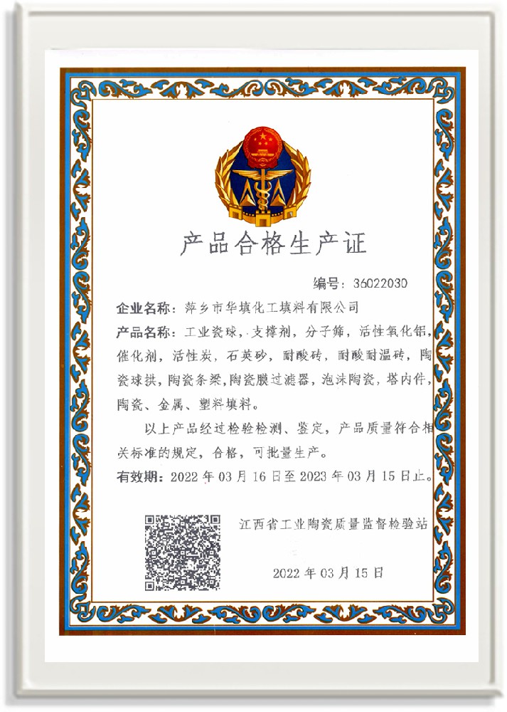 萍鄉(xiāng)市華填化工填料有限公司,位于320國道、109國道、浙贛鐵路、昌金高速公路貫穿其中,交通便利,是江西西部一顆燦爛明珠,創(chuàng)建于20世紀70年代初期,是中國石油天然氣股份有限公司“能源一號網”會員企業(yè)、中國石化物資采購電子商務網絡和中國海洋石油總公司采辦業(yè)務系統(tǒng)成員單位,是上海大學江西材料基因組工程產業(yè)研究院工業(yè)陶瓷產業(yè)創(chuàng)新聯盟基地,且通過ISO9001:2015質量管理體系、ISO14001:2015環(huán)境管理體系、ISO45001:2018職業(yè)健康安全管理體系認證的化工填料生產企業(yè)。公司擁有陶瓷、塑料、金屬填料、催化劑、活性氧化鋁、分子篩等產品生產線,現有固定資產3616萬元,占地面積3.8萬平方米。公司具有悠久的生產歷史、雄厚的技術力量和先進的生產工藝設備,可生產工業(yè)瓷球(支撐劑)、陶瓷、金屬、塑料質的規(guī)整、散堆化工填料及分子篩、催化劑、生化濾料、活性氧化鋁、石化助劑、活性炭、環(huán)保材料、耐火材料等系列的200多種規(guī)格型號產品。